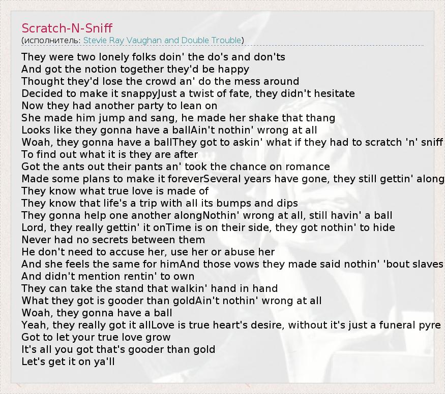 А как ты думаешь, о чем песня "Scratch-N-Sniff" ?