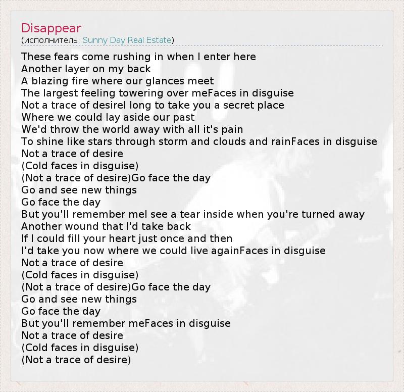 А как ты думаешь, о чем песня "Disappear" ?
