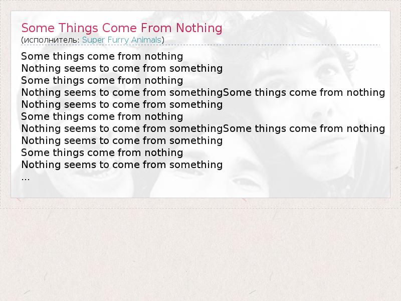 А как ты думаешь, о чем песня "Some Things Come From Nothing" ?