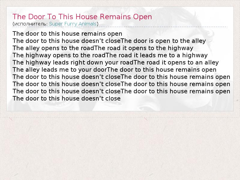 А как ты думаешь, о чем песня "The Door To This House Remains Open" ?