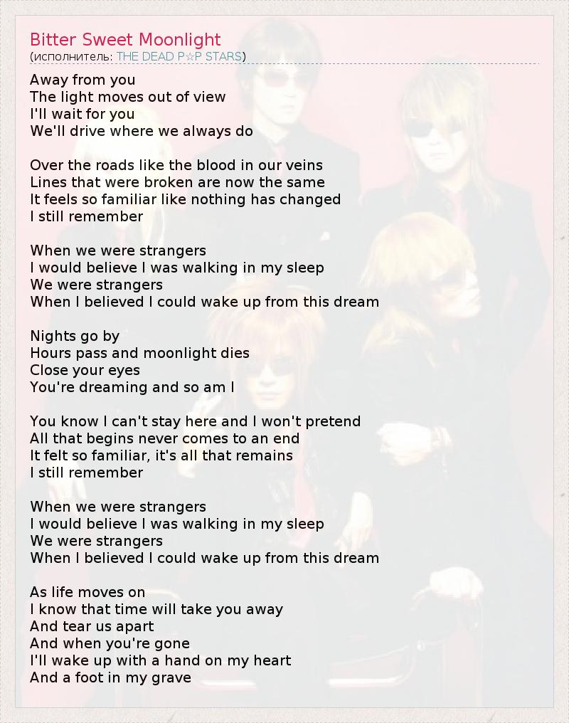 А как ты думаешь, о чем песня "Bitter Sweet Moonlight" ?