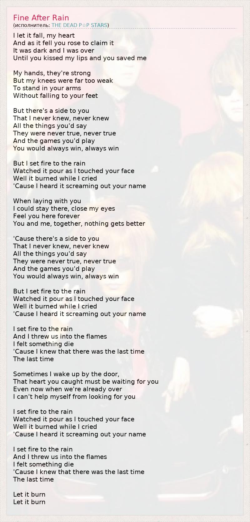 А как ты думаешь, о чем песня "Fine After Rain" ?