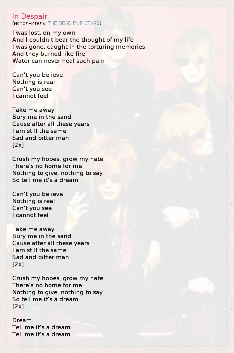 А как ты думаешь, о чем песня "In Despair" ?