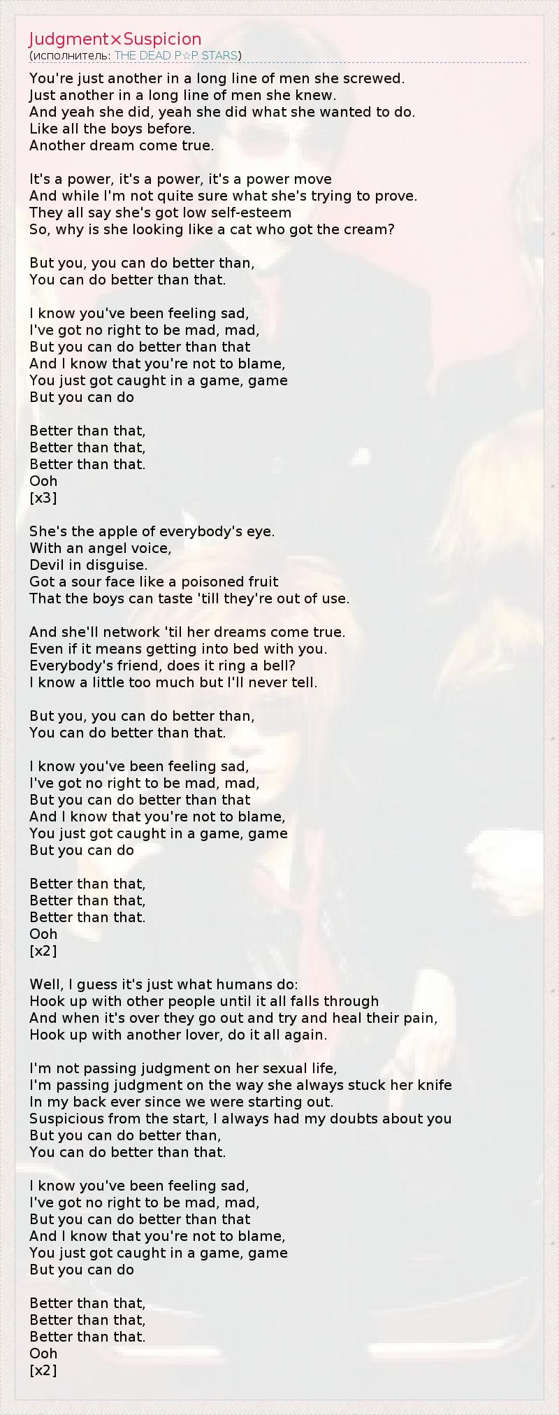 А как ты думаешь, о чем песня "Judgment×Suspicion" ?
