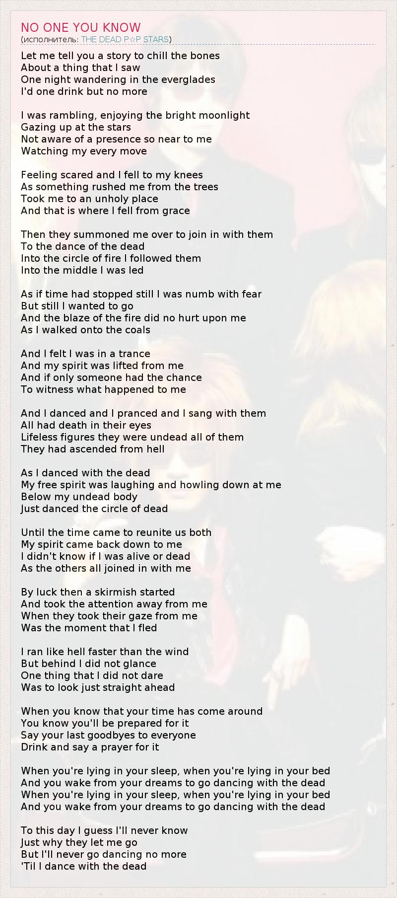 А как ты думаешь, о чем песня "NO ONE YOU KNOW" ?