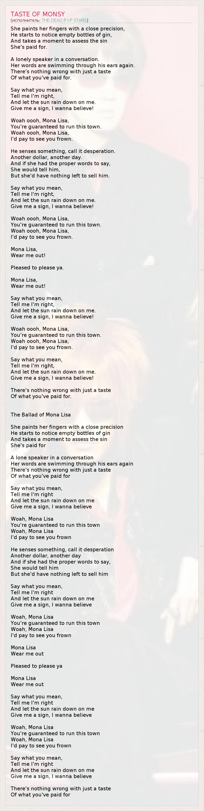 Баллада Моны Лизы (перевод loveinme из Denver)