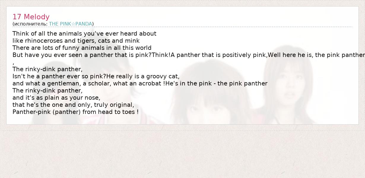 But have you ever seen a panther that is pink?Think!A panther that is positively pink,Well here he is, the pink panther