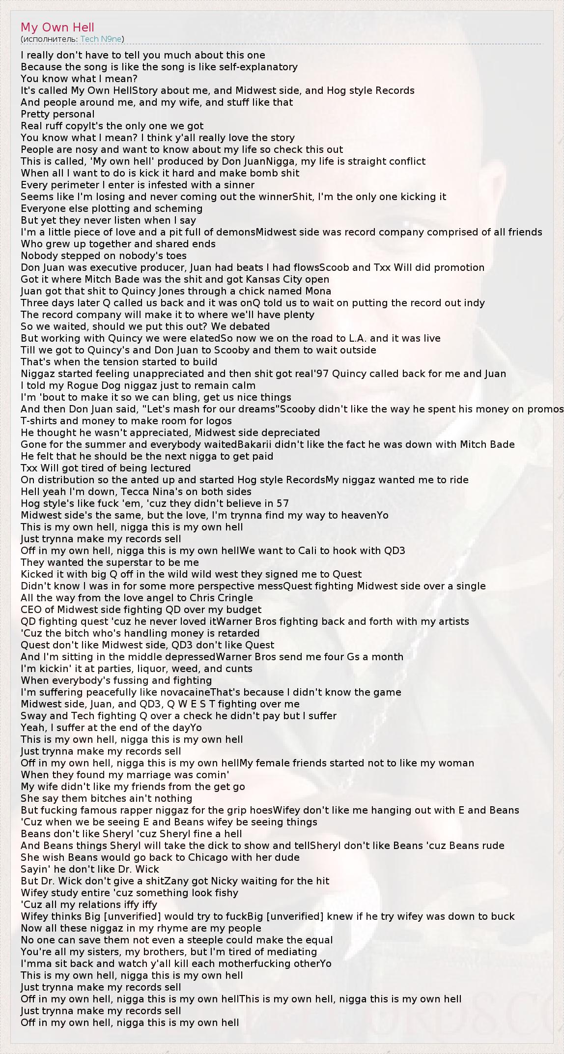 It's called My Own HellStory about me, and Midwest side, and Hog style Records