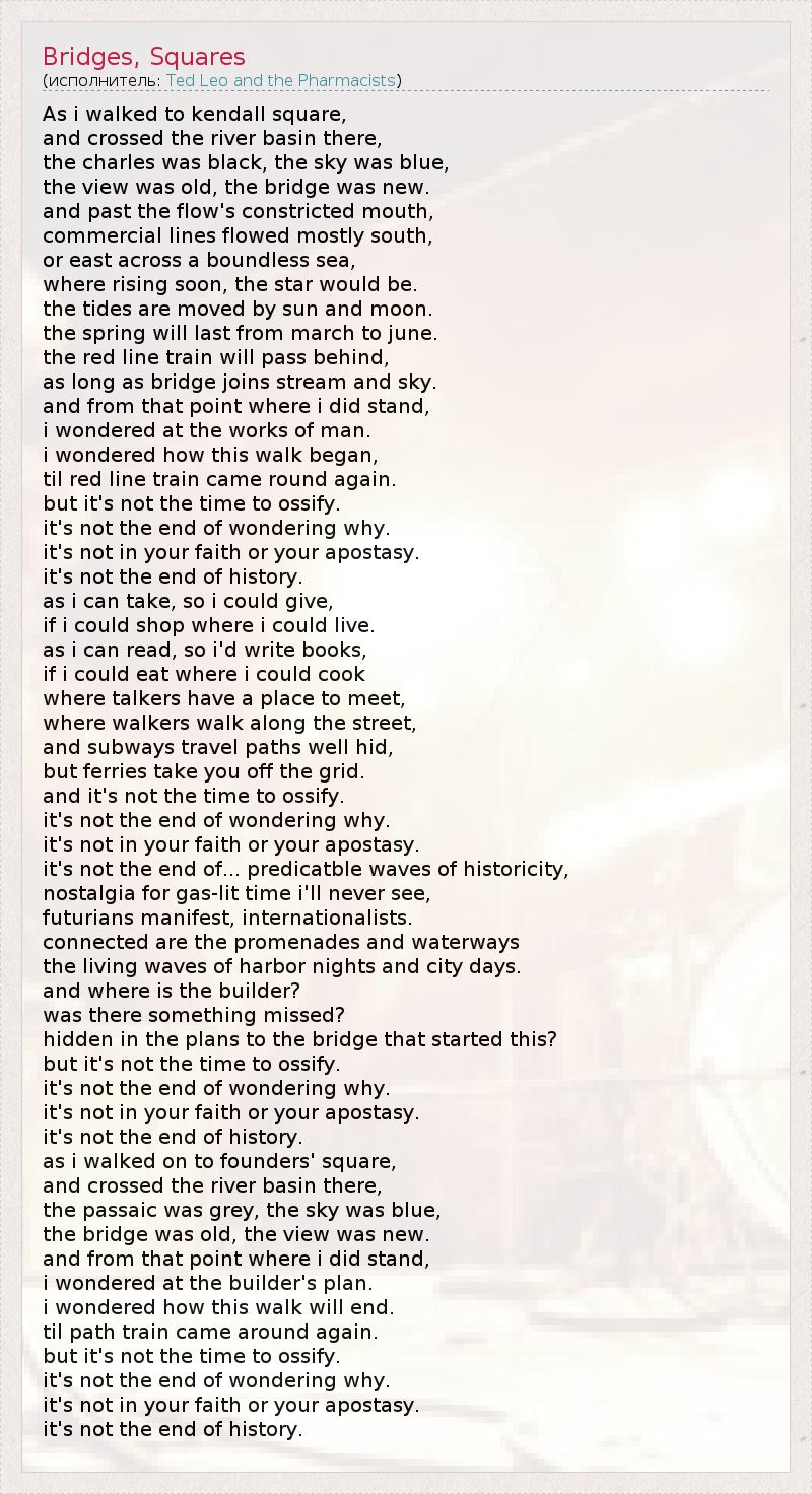 А как ты думаешь, о чем песня "Bridges, Squares" ?