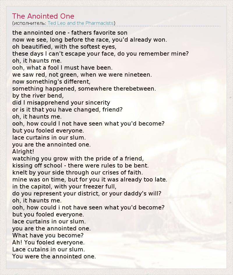 А как ты думаешь, о чем песня "The Anointed One" ?