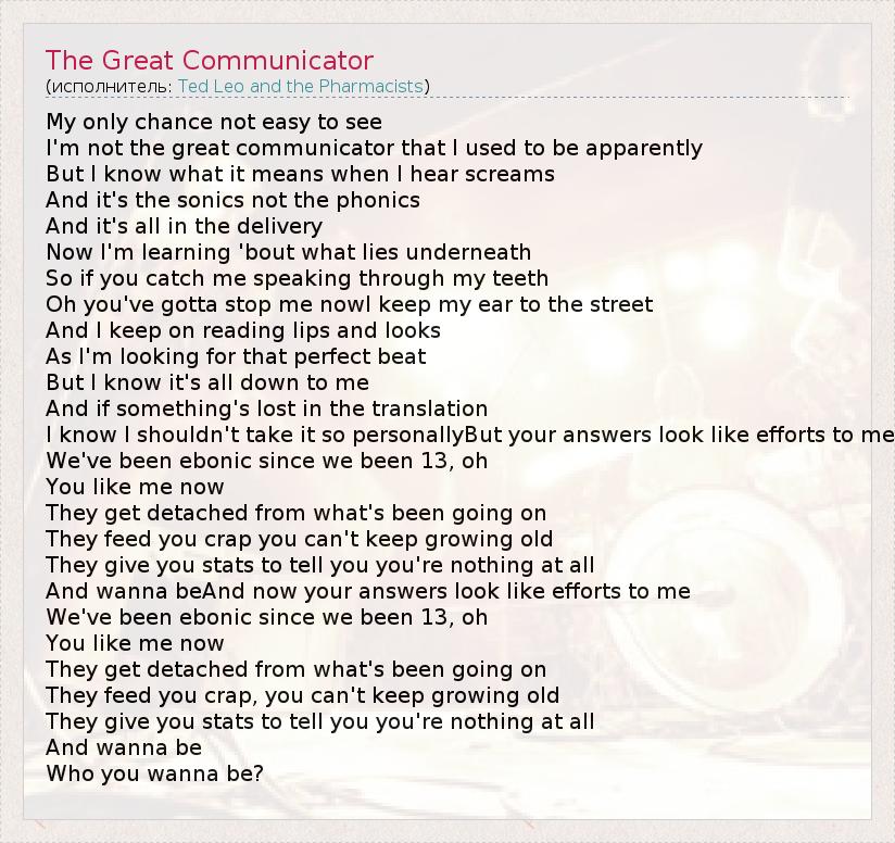 А как ты думаешь, о чем песня "The Great Communicator" ?