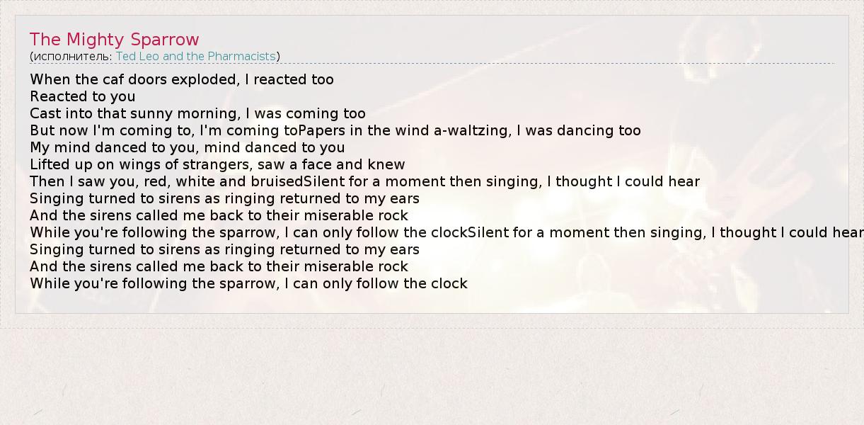 А как ты думаешь, о чем песня "The Mighty Sparrow" ?