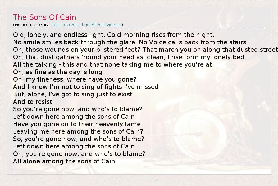 А как ты думаешь, о чем песня "The Sons Of Cain" ?