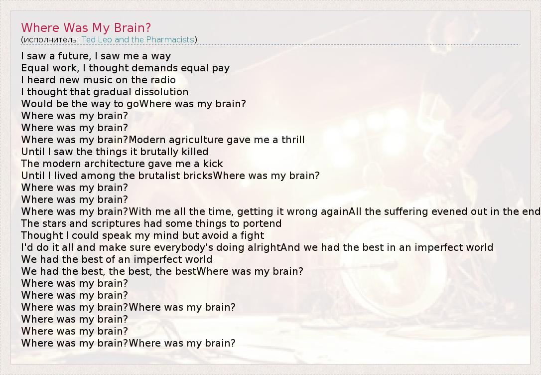 А как ты думаешь, о чем песня "Where Was My Brain?" ?