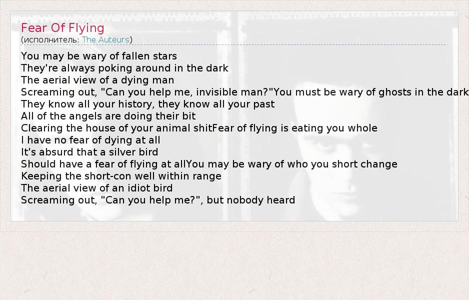 А как ты думаешь, о чем песня "Fear Of Flying" ?