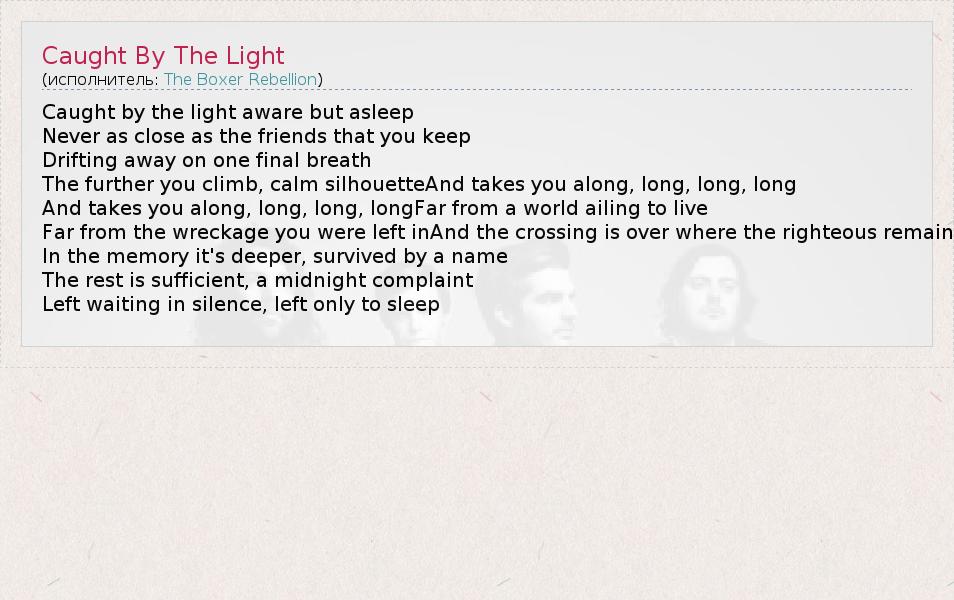А как ты думаешь, о чем песня "Caught By The Light" ?