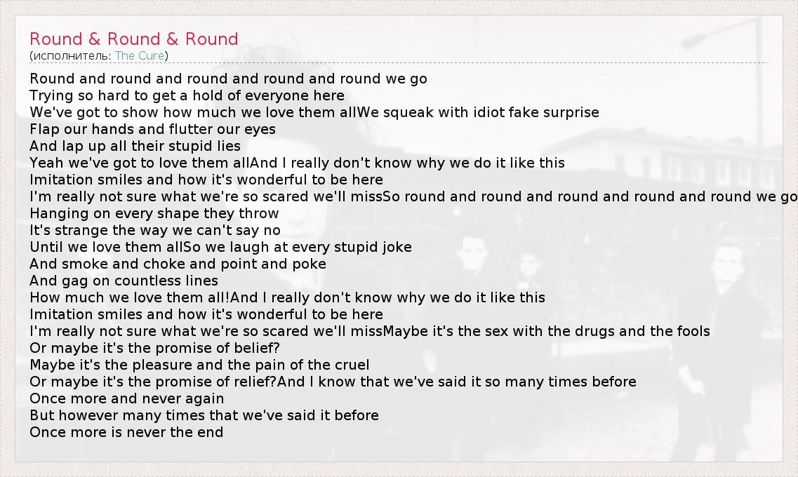 А как ты думаешь, о чем песня "Round & Round & Round" ?