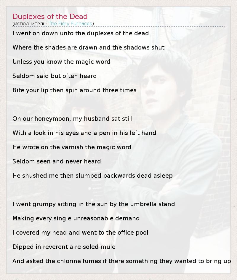 А как ты думаешь, о чем песня "Duplexes of the Dead" ?