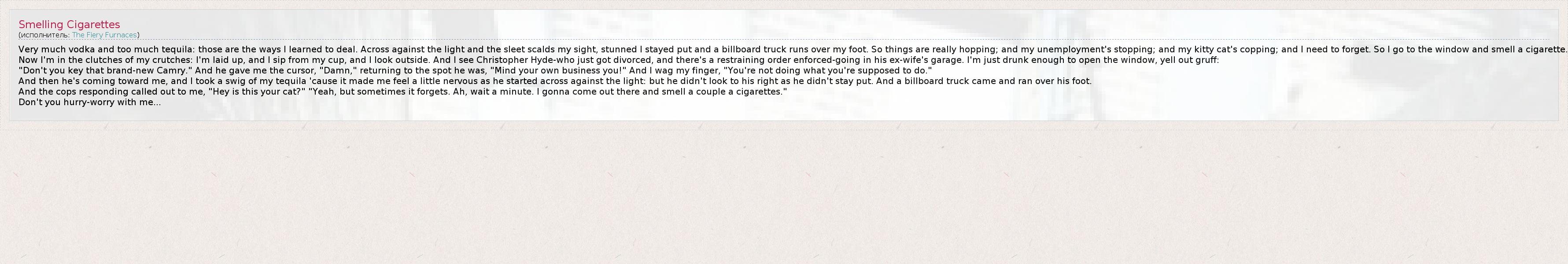 А как ты думаешь, о чем песня "Smelling Cigarettes" ?