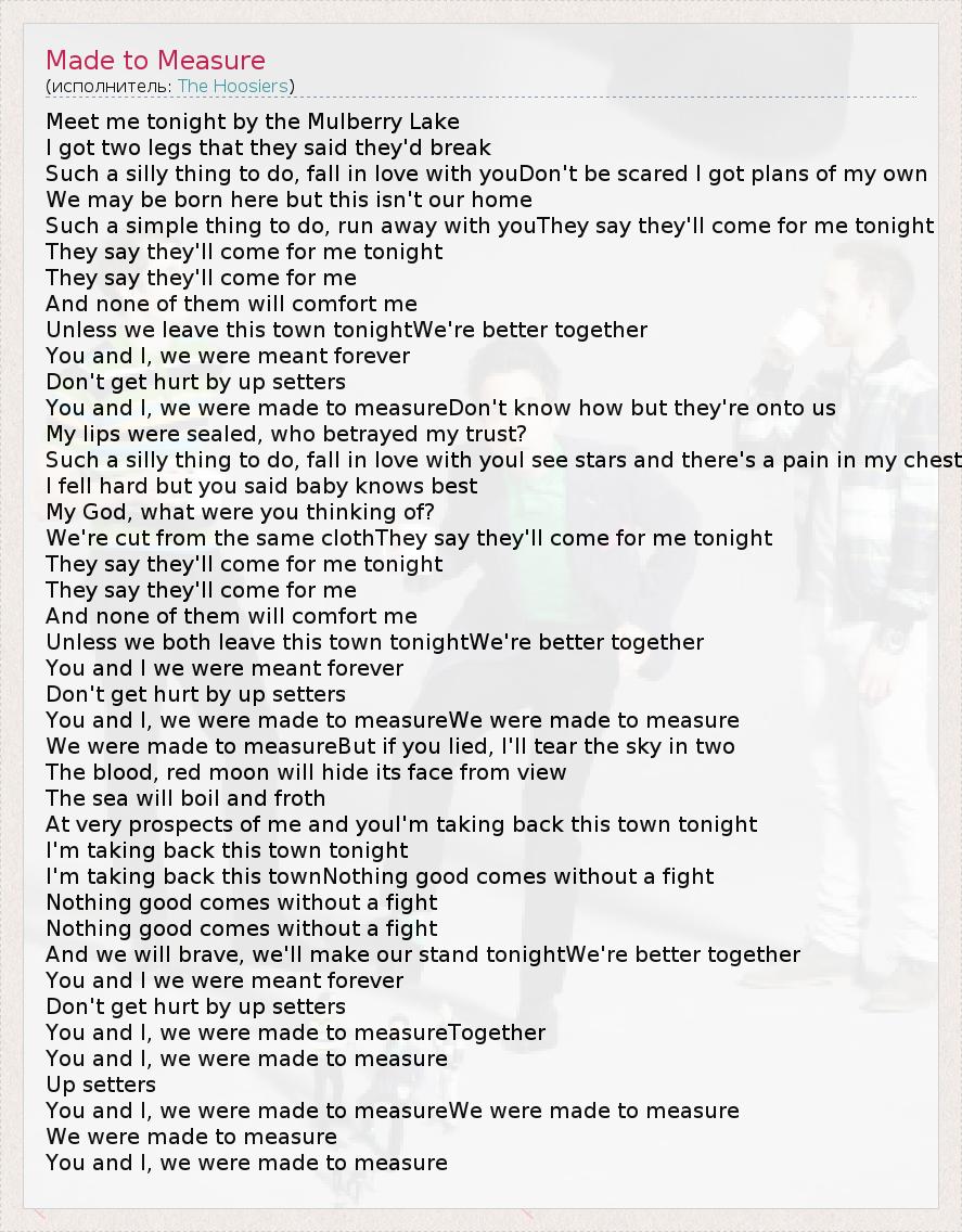 А как ты думаешь, о чем песня "Made to Measure" ?