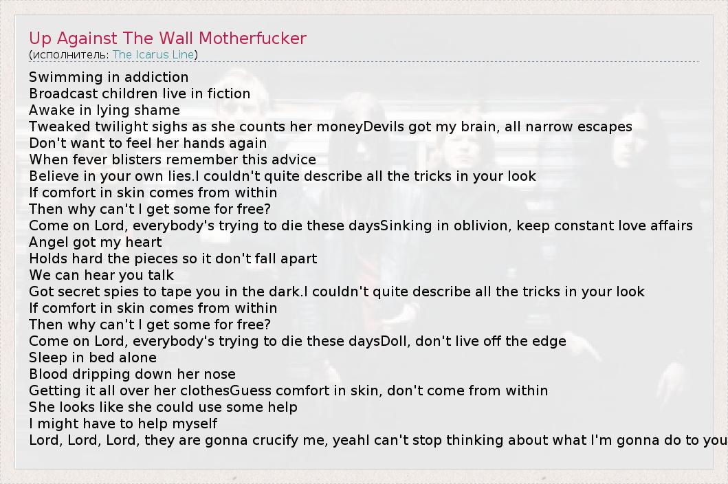 А как ты думаешь, о чем песня "Up Against The Wall Motherfucker" ?