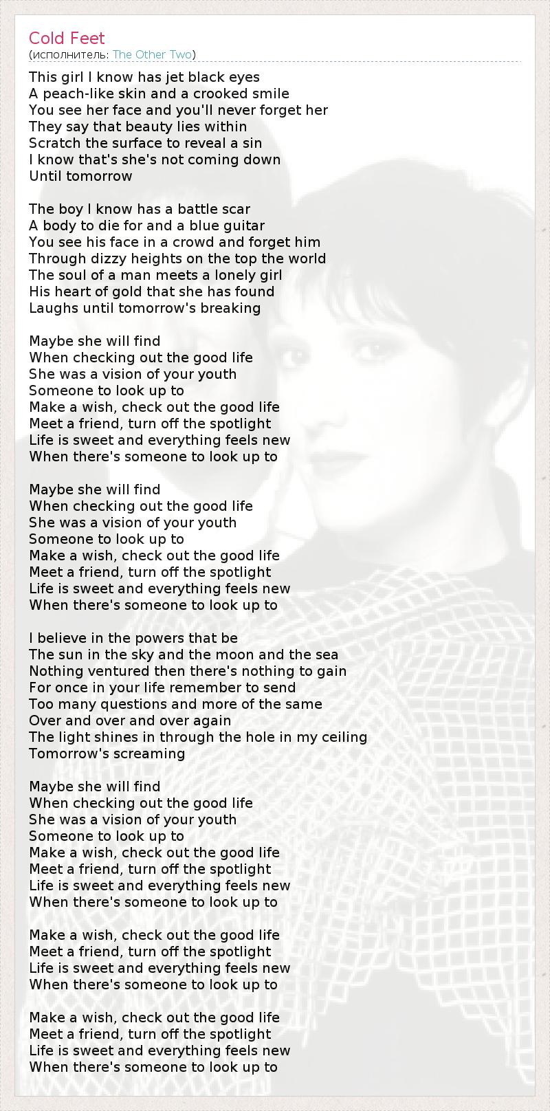 А как ты думаешь, о чем песня "Cold Feet" ?