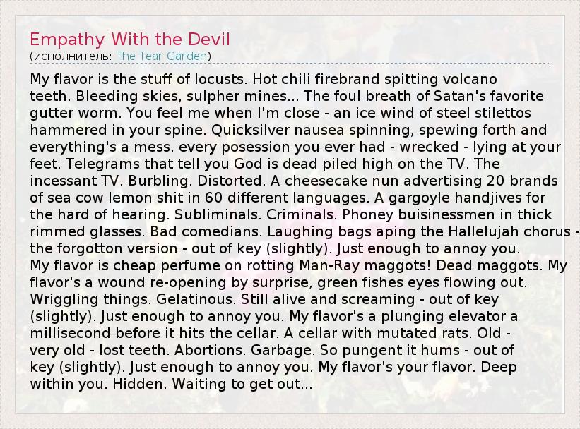 А как ты думаешь, о чем песня "Empathy With the Devil" ?