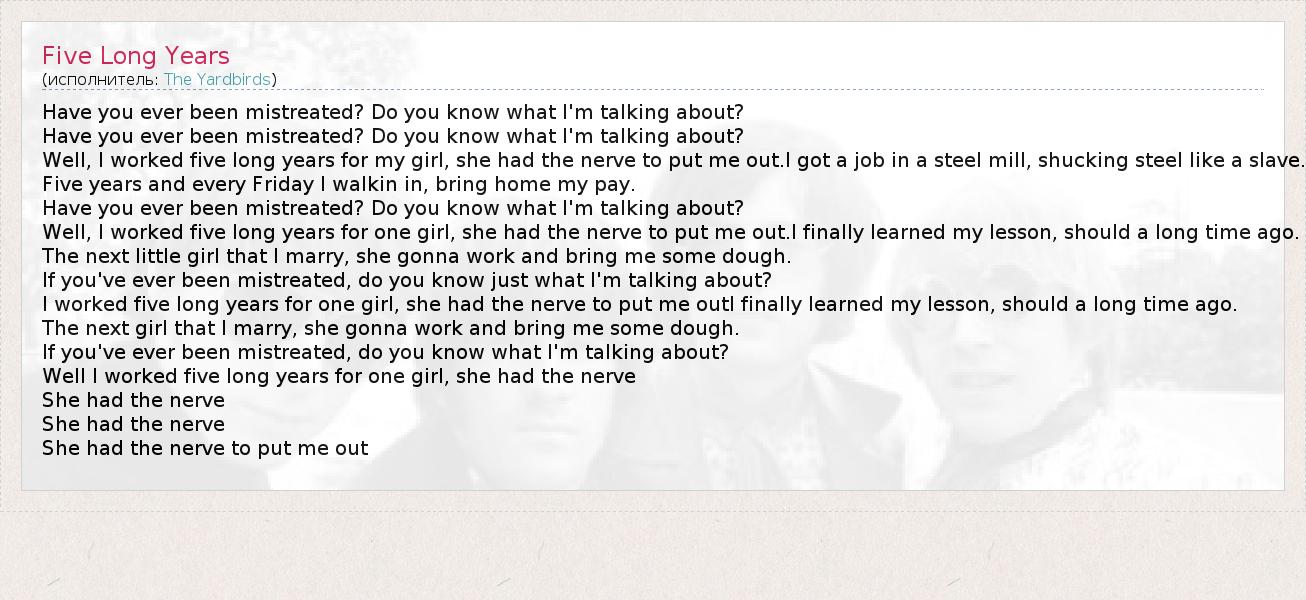 А как ты думаешь, о чем песня "Five Long Years" ?