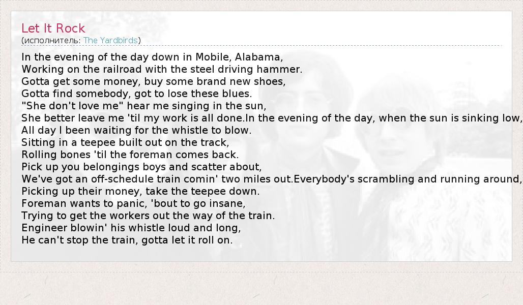 А как ты думаешь, о чем песня "Let It Rock" ?