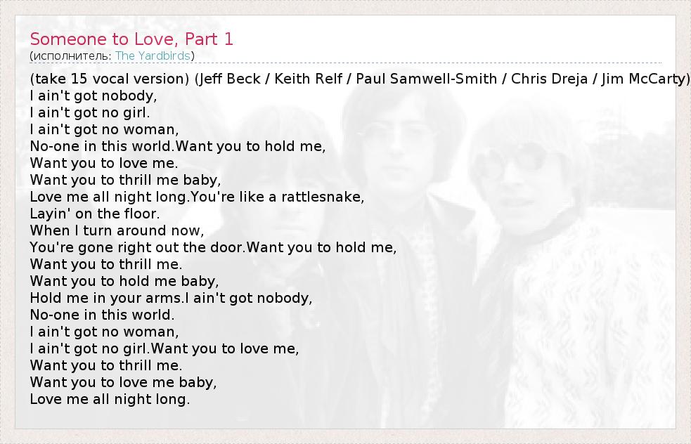А как ты думаешь, о чем песня "Someone to Love, Part 1" ?