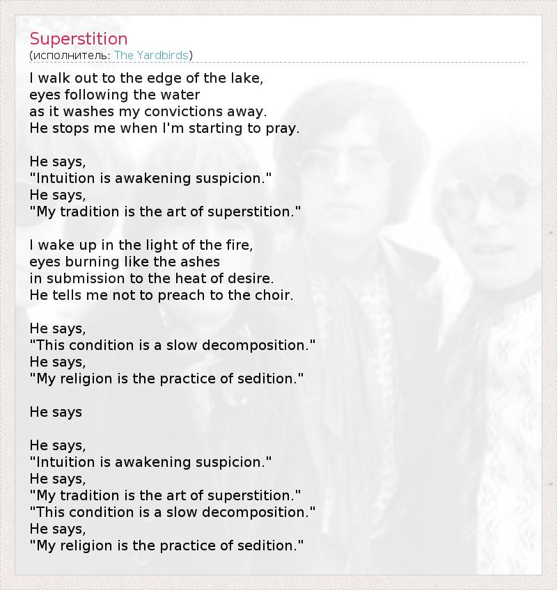 А как ты думаешь, о чем песня "Superstition" ?