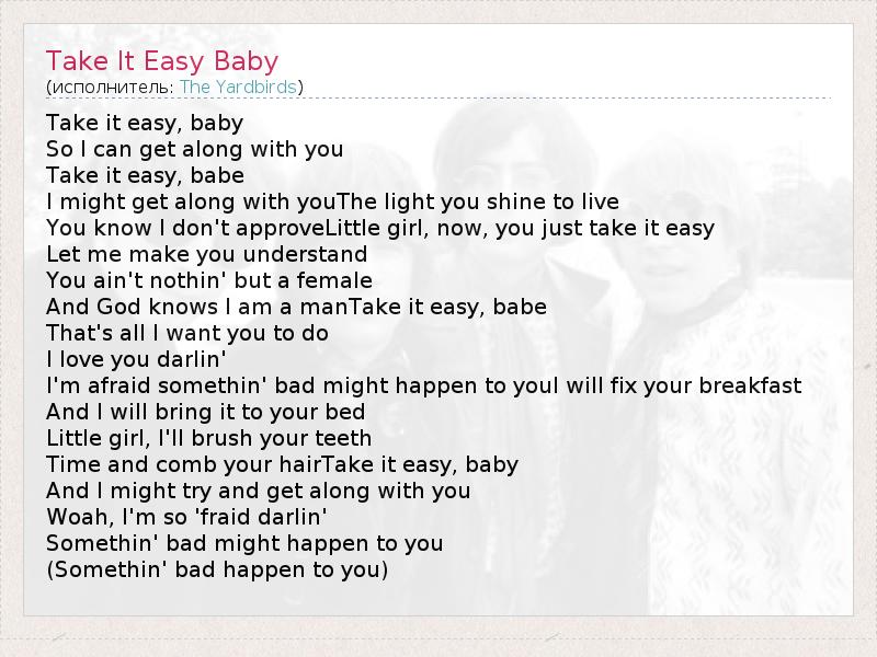 А как ты думаешь, о чем песня "Take It Easy Baby" ?