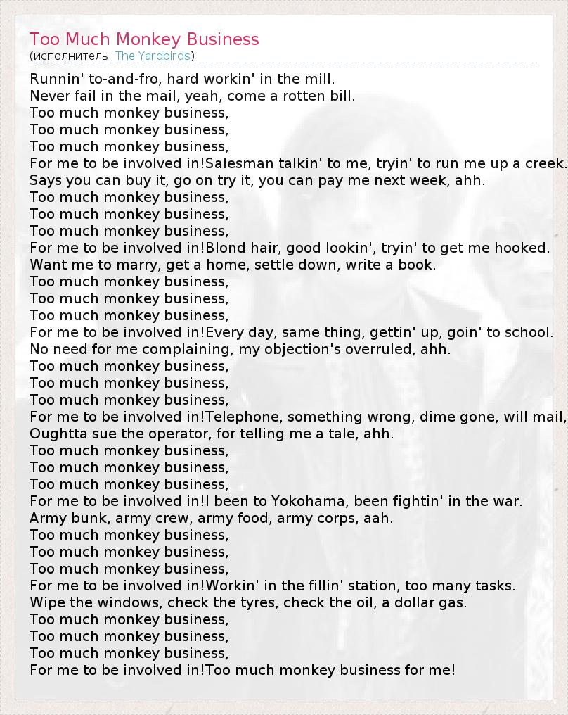 А как ты думаешь, о чем песня "Too Much Monkey Business" ?
