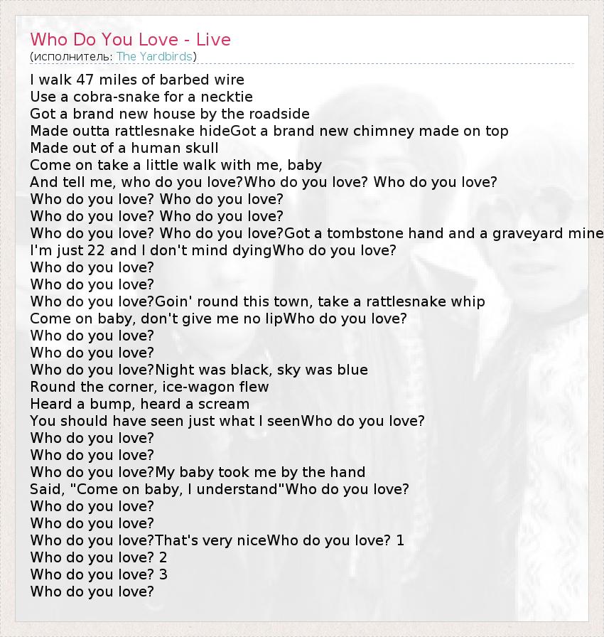 А как ты думаешь, о чем песня "Who Do You Love - Live" ?