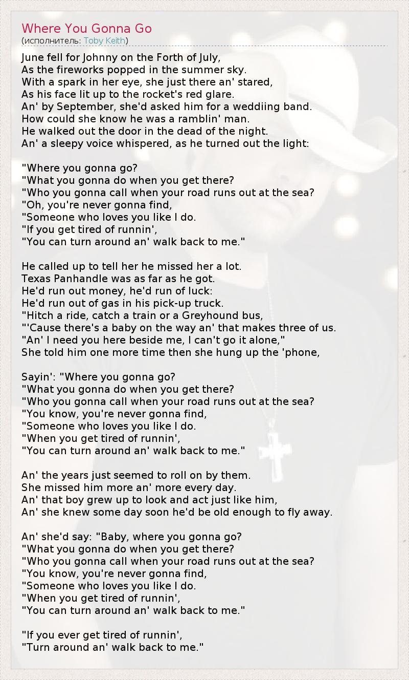 А как ты думаешь, о чем песня "Where You Gonna Go" ?