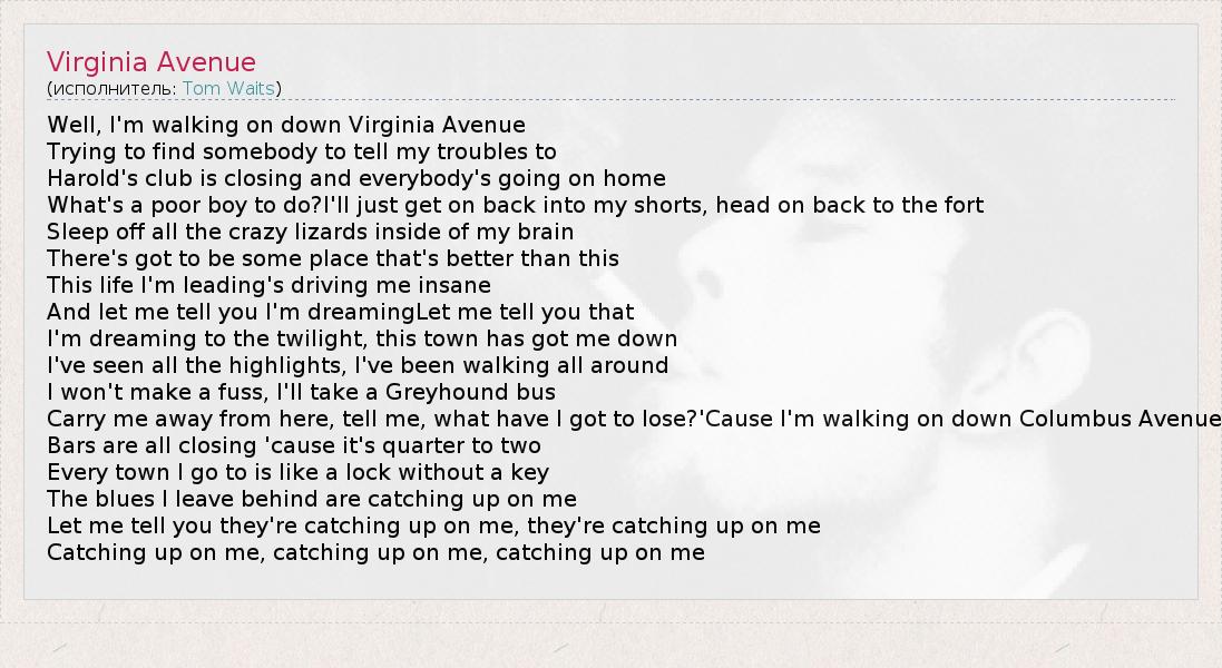 А как ты думаешь, о чем песня "Virginia Avenue" ?