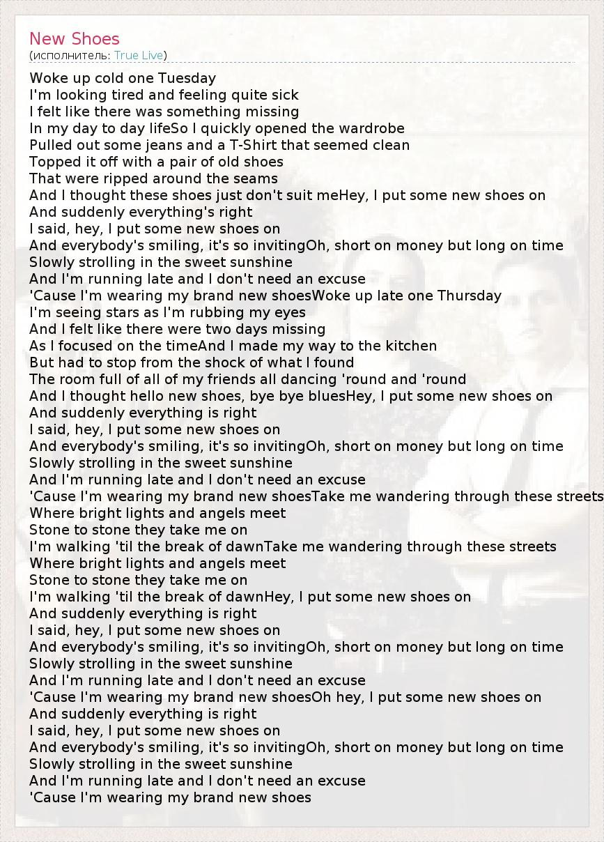 'Cause I'm wearing my brand new shoesOh hey, I put some new shoes on