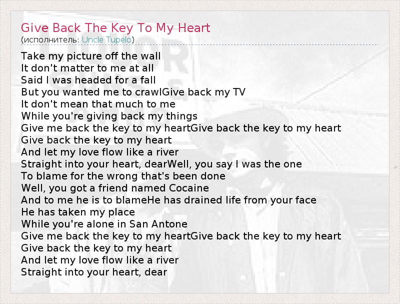 А как ты думаешь, о чем песня "Give Back The Key To My Heart" ?