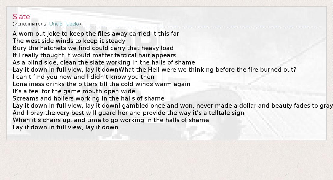 А как ты думаешь, о чем песня "Slate" ?