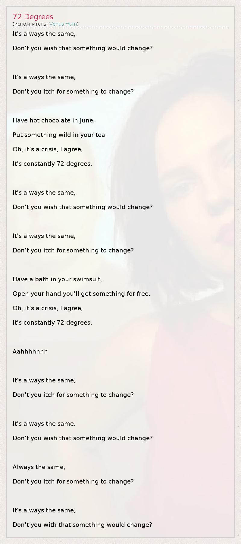 А как ты думаешь, о чем песня "72 Degrees" ?