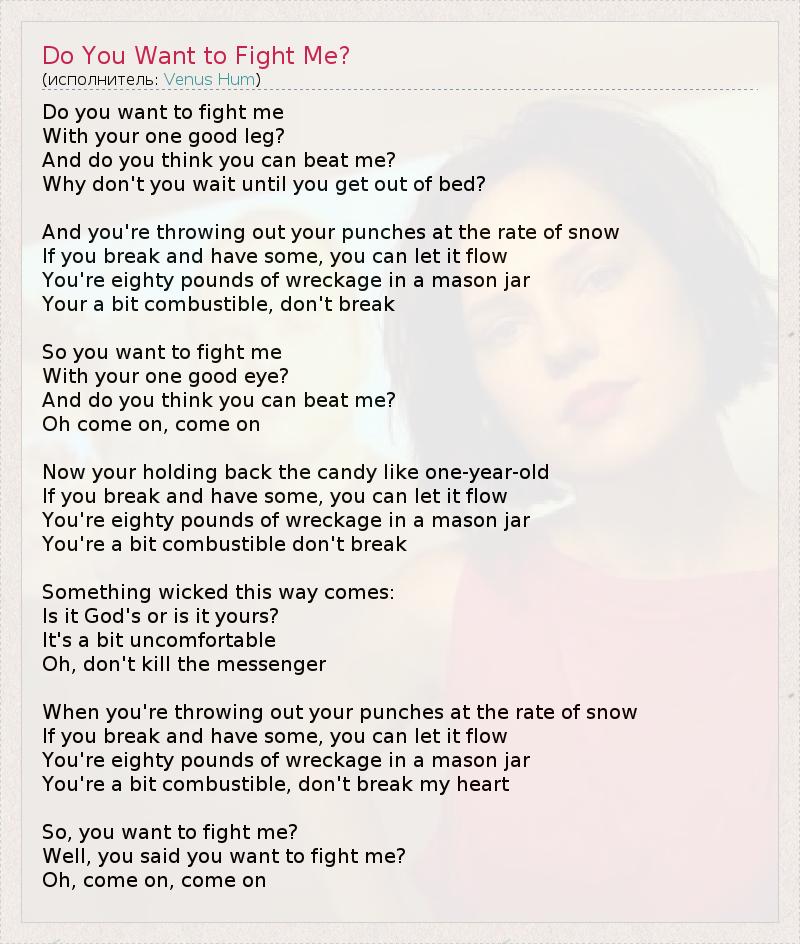А как ты думаешь, о чем песня "Do You Want to Fight Me?" ?