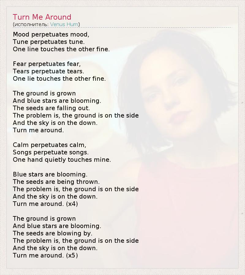 А как ты думаешь, о чем песня "Turn Me Around" ?