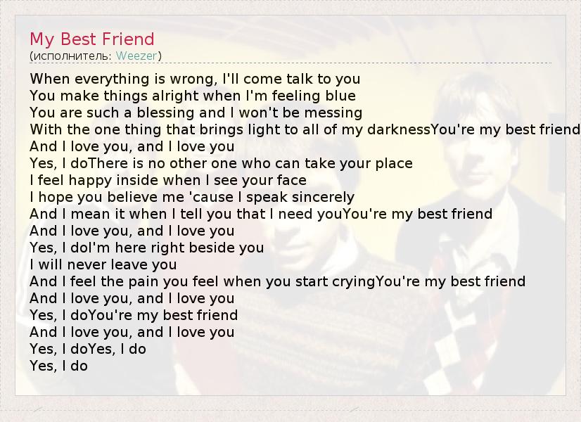 А как ты думаешь, о чем песня "My Best Friend" ?