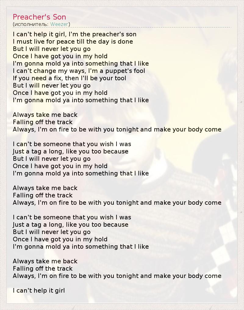 А как ты думаешь, о чем песня "Preacher's Son" ?