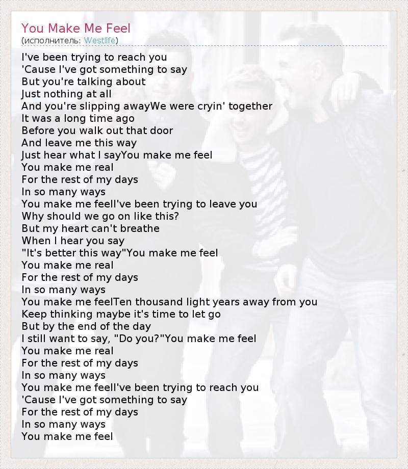 А как ты думаешь, о чем песня "You Make Me Feel" ?