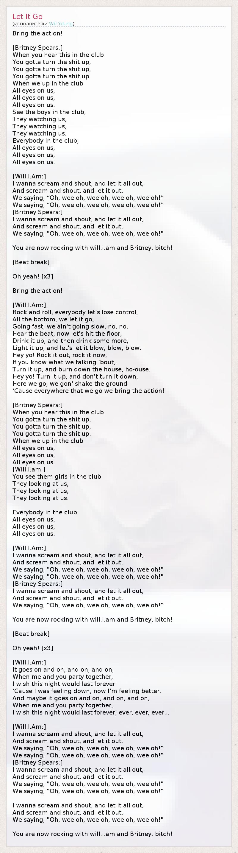 Нынче ты зажигаешь с уилл.ай.эмом и Бритни, с**ка!