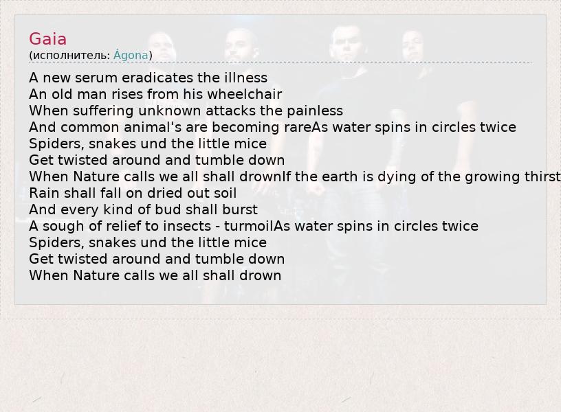 А как ты думаешь, о чем песня "Gaia" ?
