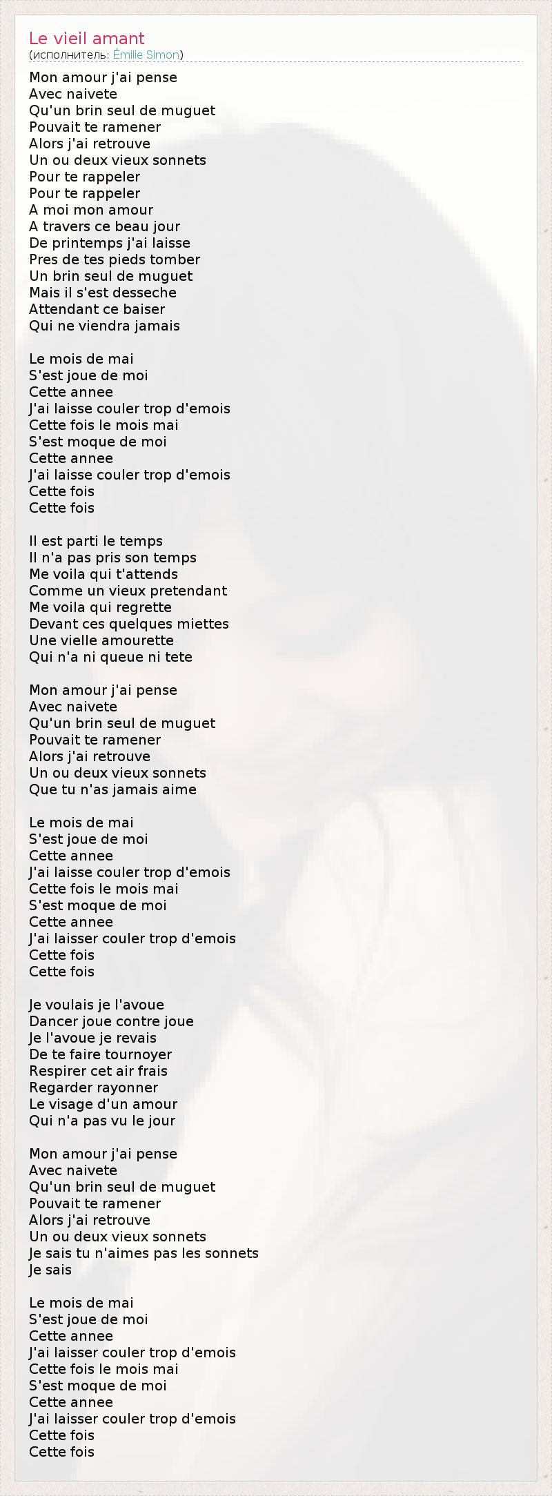 А как ты думаешь, о чем песня "Le vieil amant" ?