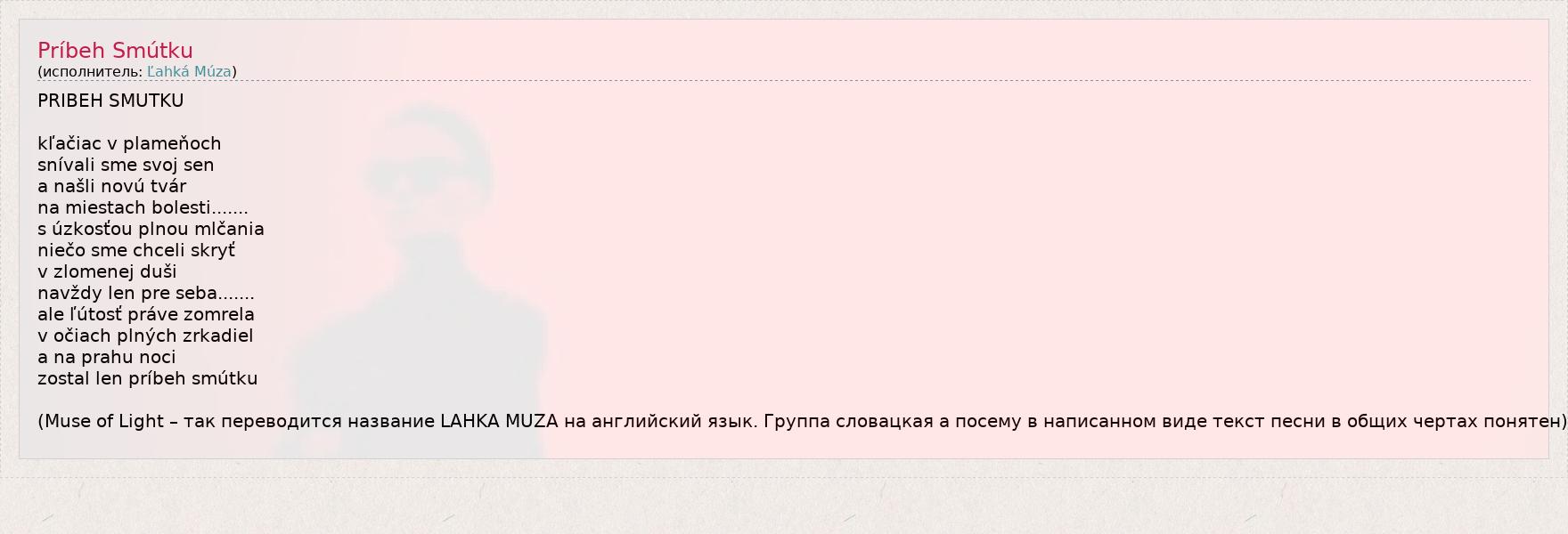 (Muse of Light – так переводится название LAHKA MUZA на английский язык. Группа словацкая а посему в написанном виде текст песни в общих чертах понятен)