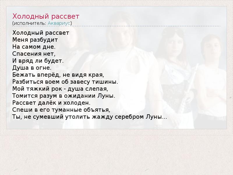 А как ты думаешь, о чем песня "Холодный рассвет" ?